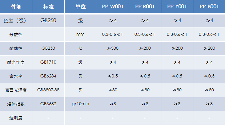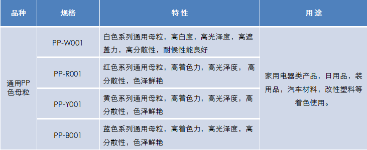 牌號:PP-W001、PP-R001、PP-Y001、PP-B001應(yīng)用:家用電器類產(chǎn)品,日用品,裝用品,汽車材料,改性塑料等著色使用特點:高光澤度、高分散性、高著色力、色澤鮮艷