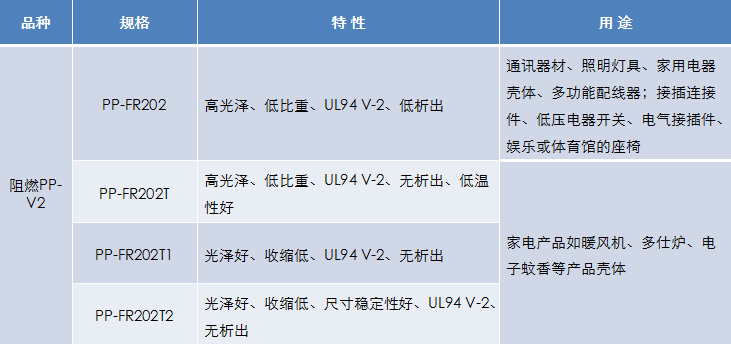 牌號:PP-FR202、PP-FR202T、PP-FR202T1、PP-FR202T2