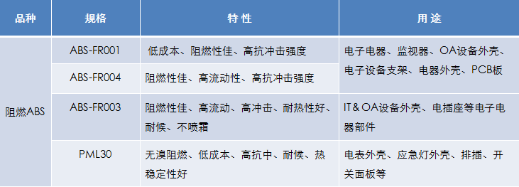 牌號:ABS-FR001、ABS-FR003、ABS-FR004應用:電子電器、監(jiān)視器、OA設備外殼、電子設備支架、電器外殼、PCB板特點:低成本、阻燃性佳、高抗沖擊強度